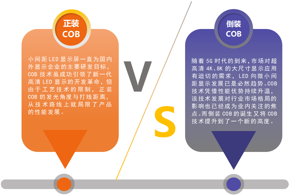 益于小间距LED的发展,COB、IMD、SMD等技术在这几年得到了繁荣发展,并一步步走向世界的前列。而在日趋增长的P1.0以下微间距显示市场中,COB是核心的技术路线之一,更是分化出正装与倒装之列,倒装COB又因能够真正实现芯片级差距,想象空间更为广阔,更是备受产业关注!