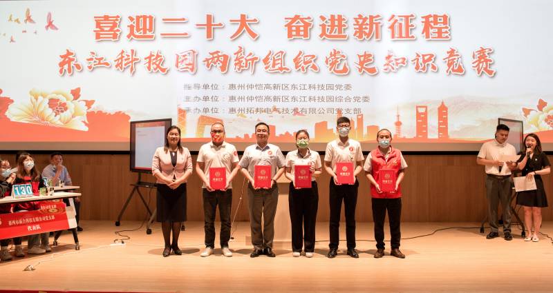 4月28日,由东江科技园两新组织举办,以“喜迎二十大、奋进新征程”为主题的党史知识竞赛正式开赛,来自园区党委委员班子成员以及14支两新党支部代表队参加竞赛。经过紧张激烈的角逐,williamhill光电党支部代表队以优异的成绩荣获第三名。