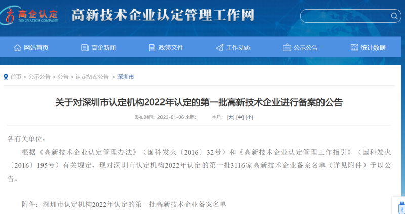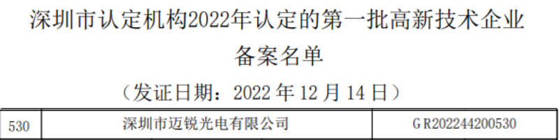 近日,全国高新技术企业认定管理工作领导小组办公室对深圳市2022年第一批认定报备高新技术企业名单进行了公示。经过层层筛选和严格审核,深圳市williamhill光电有限公司正式被认定为“高新技术企业”。