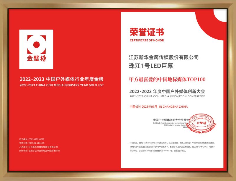 一年一度的“金璧奖·中国户外媒体创新大会”,是中国境内举办的户外媒体业年度高级别的创新赛事活动,在户外媒体业内被誉为“奥斯卡”。比选结果具有客观的代表性,将会产生巨大的市场导向和影响力,也被行业称为《米其林红色宝典》。